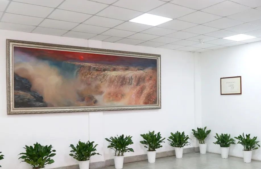 来到办公楼底楼的活动室,看到了大型油画黄河瀑布,这是我校开办之日,由著名油画家赵一凡老师所画,画面气势磅礴,雷霆万钧,给人震撼。此画多次借出,参加在上海、在全国举办的画展,我曾让任教的一个班级每一位同学以此画写过文章,也算是一次爱国主义教育活动。吕校长告诉我,程开甲的题词以及这幅画待校史室建立后,都会陈列展出。